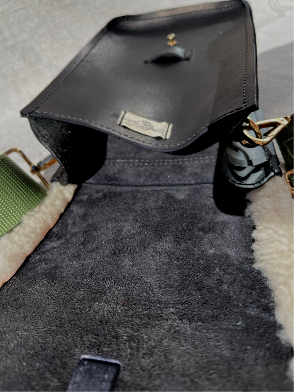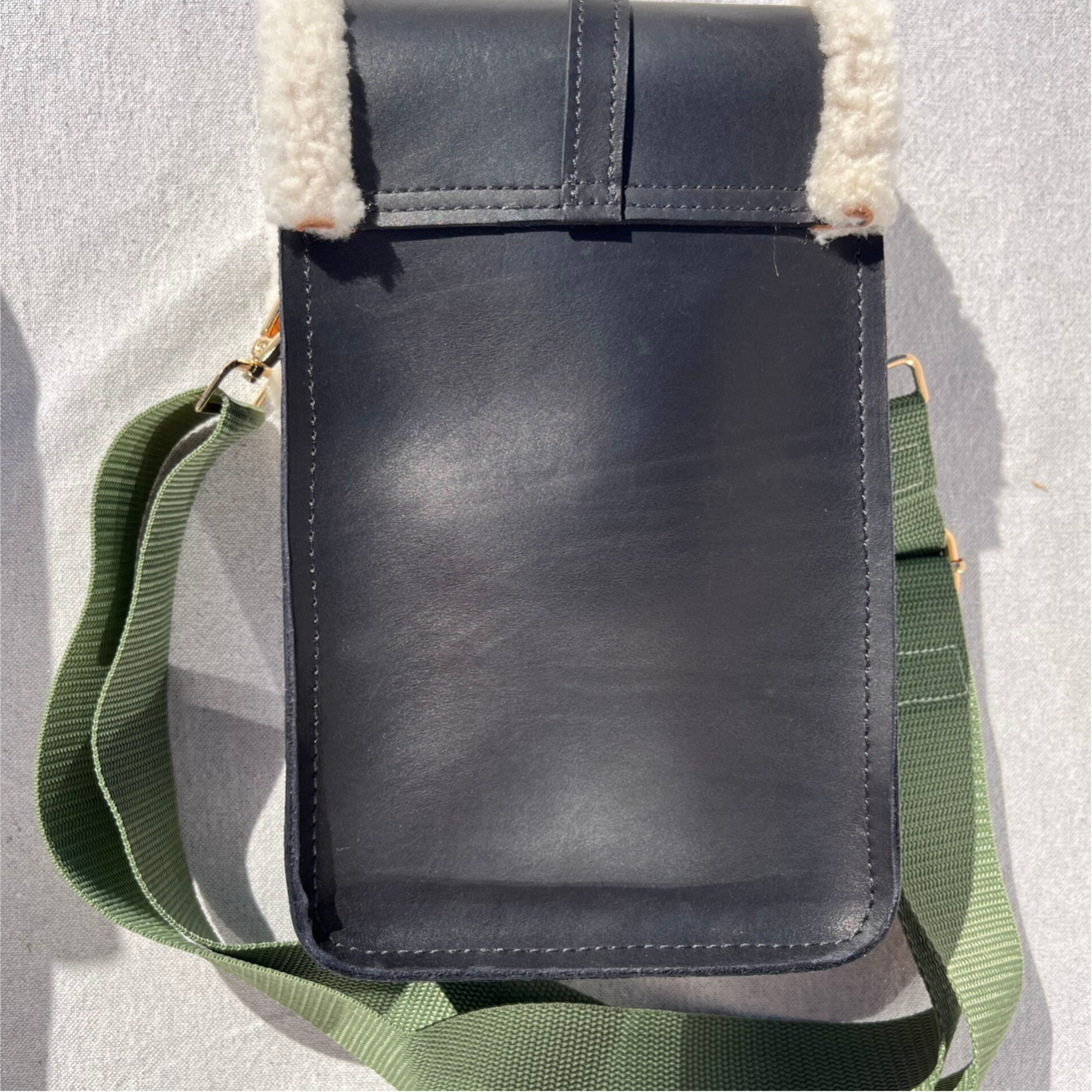 La petite touche qui fait toute la différence: la laine. En effet j’ai souligné le contour du rabat en cuir avec de la laine véritable. L’alliage des deux texture apporte non seulement un côté unique, mais également une chaleur et une douceur qui transforme l'objet en une pièce véritablement exceptionnelle. De plus, elle évoque une sensation d'authenticité et de savoir-faire artisanal qui ravit les amateurs de belles choses. Ses dimensions sont de 25cm de haut, 15.5 de long et 7 cm de large.